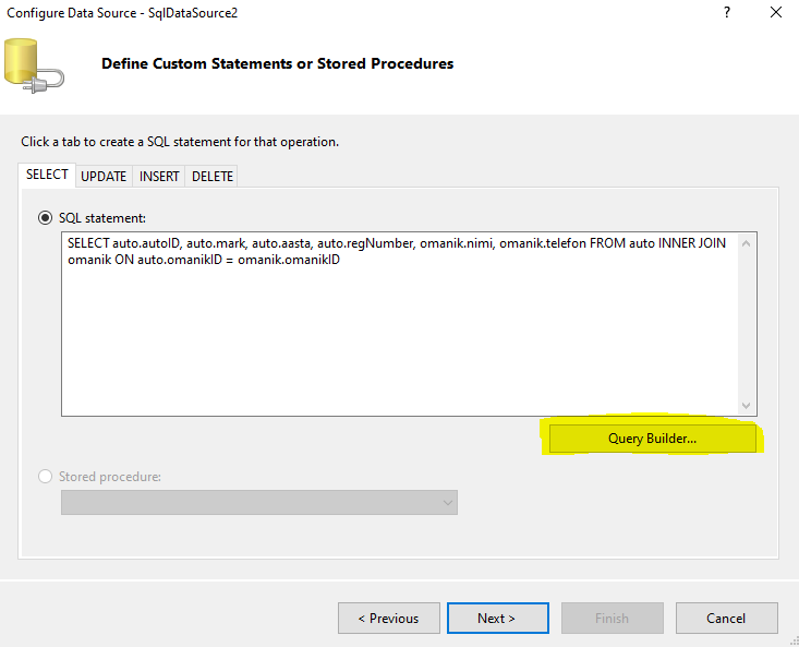 Выбираем первую опцию, после чего нас перебрасывает на следуюший этап, где нам нужно выбрать Query Builder: