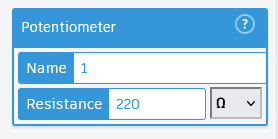 - Для симуляции настраиваем сопротивление потенциометра на 220 Ом: