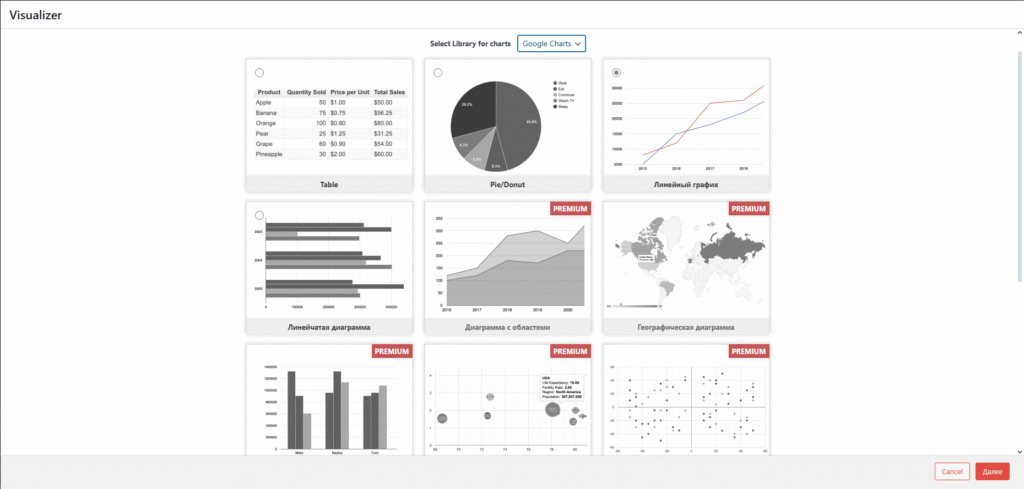 Устанавливаем плагин Visualizer: Tables and Charts: